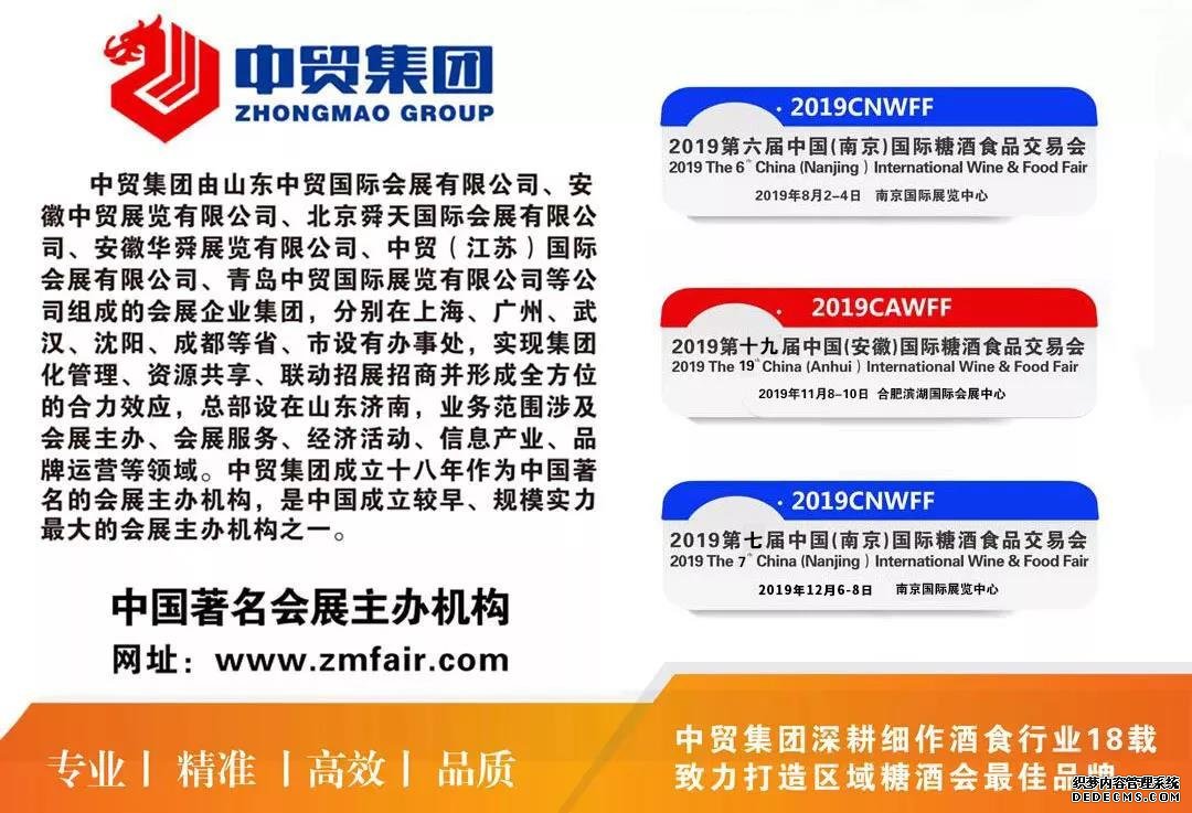 8月2日,以“共謀發(fā)展、同譜新篇”為主題的2019第六屆中國(南京)國際糖酒食品交易會隆重開幕。展會由中國酒類流通協(xié)會、江蘇省商務(wù)廳、江蘇工商業(yè)聯(lián)合會指導(dǎo),江蘇省酒類行業(yè)協(xié)會、中貿(mào)科技集團(tuán)有限公司主辦,山東中貿(mào)江蘇國際會展有限公司承辦。旨在通過展示、品鑒、交易、論壇等系列活動,重點(diǎn)展示我國改革開放40年以來糖酒食品領(lǐng)域新技術(shù)、新產(chǎn)品、新業(yè)態(tài)、新模式和行業(yè)發(fā)展新面貌、新氣象及新成就。