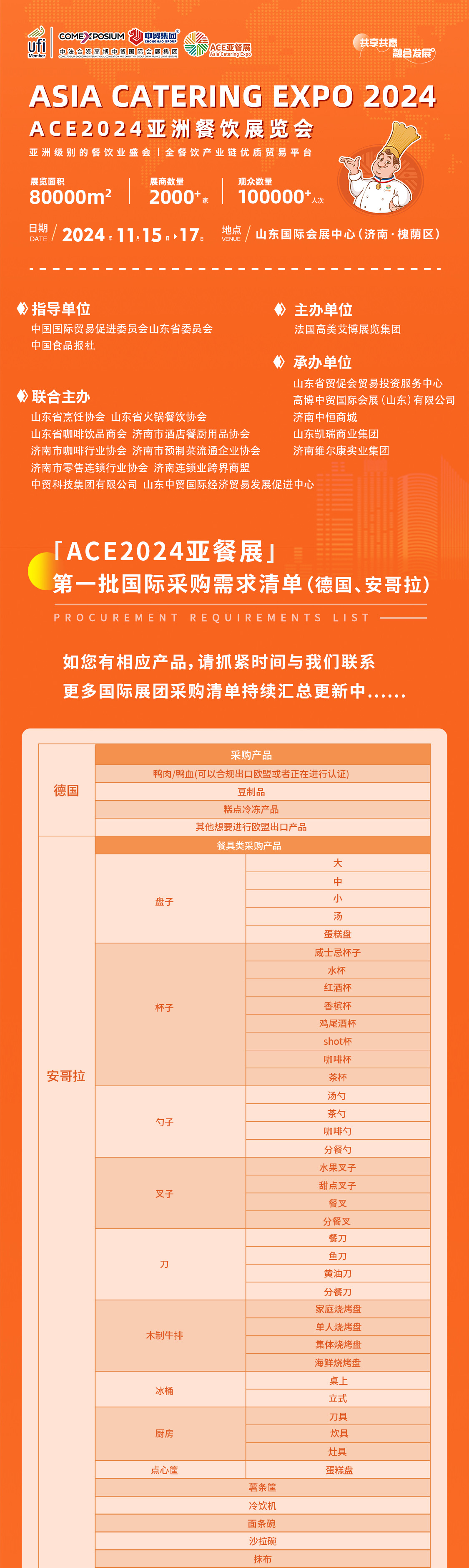 ACE2024亞餐展是由山東省貿(mào)促會(huì)與濟(jì)南市政府共同引進(jìn)的國(guó)際餐飲業(yè)品牌展會(huì),將于11月15-17日在濟(jì)南市山東國(guó)際會(huì)展中心隆重舉辦。