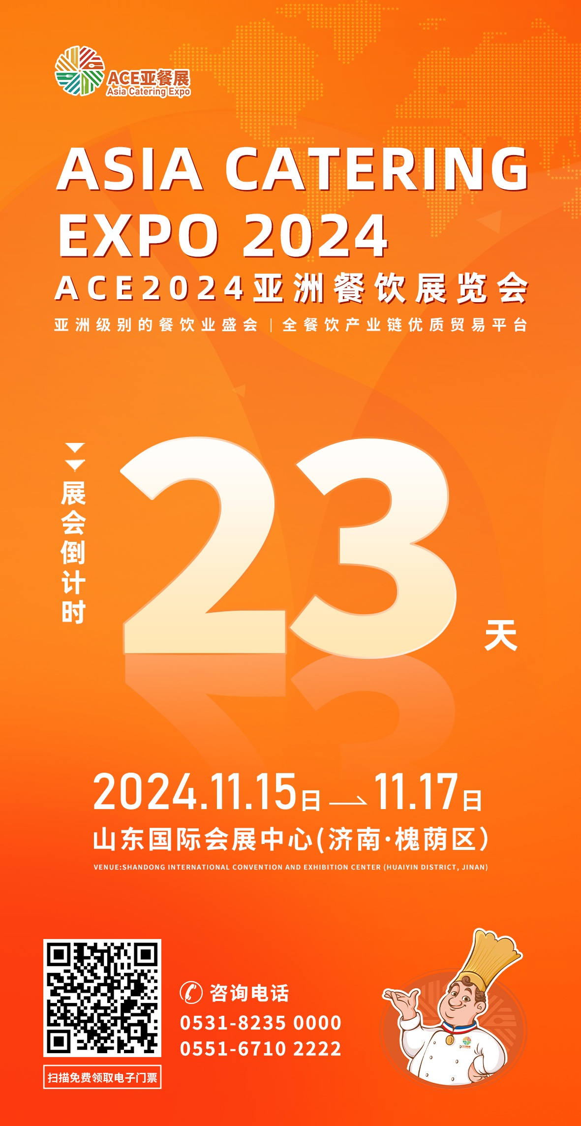 ACE2024亞洲餐飲展覽會(簡稱ACE2024亞餐展)將于11月15日在濟(jì)南市山東國際會展中心盛大開幕。展會將持續(xù)至11月17日。