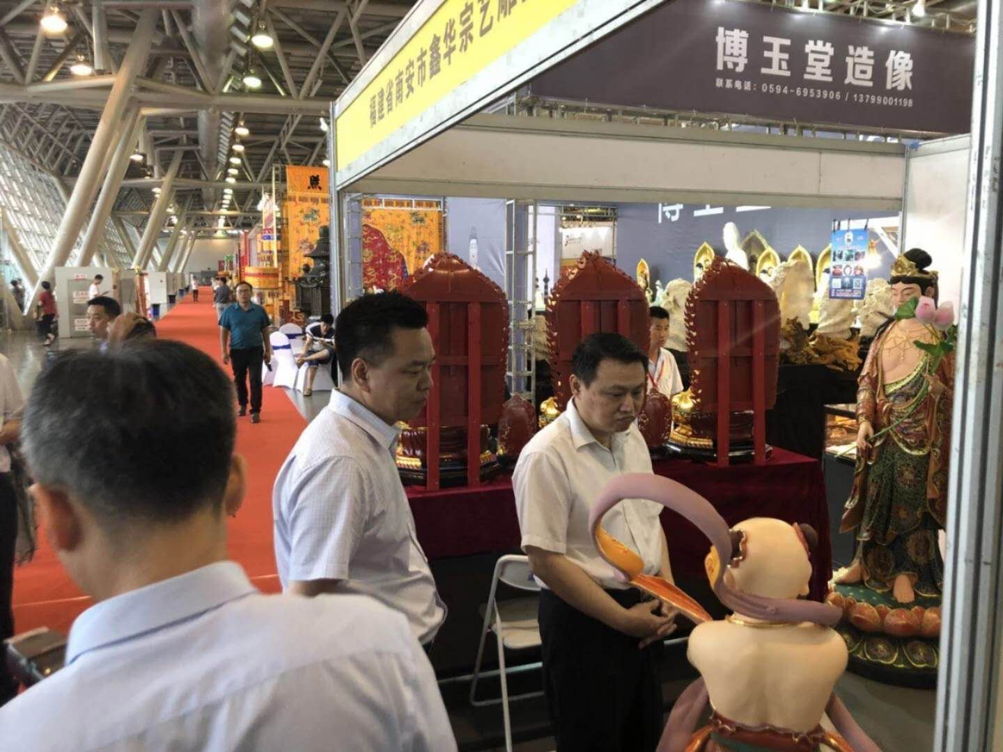 開(kāi)幕當(dāng)日下午,合肥市委常委、統(tǒng)戰(zhàn)部部長(zhǎng)陳曉波,合肥市政協(xié)副主席安嵐等領(lǐng)導(dǎo)來(lái)到安徽佛博會(huì)參觀指導(dǎo),合肥政文國(guó)際會(huì)展管理公司總經(jīng)理文良武,中貿(mào)集團(tuán)董事長(zhǎng)杜磊,中陪貿(mào)集團(tuán)總裁蔣士廣陪同參觀。