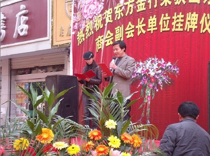 2010年11月10日上午,山東省珠寶商會會長杜磊同志率隊到臨沂-沂南縣和沂水縣調研,先后參觀了沂南和沂水珠寶金店并參加了沂南東方金行"榮獲山東省珠寶商會副會長單位掛牌儀式暨擴建竣工慶典”活動。