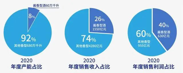 據(jù)有關(guān)數(shù)據(jù)統(tǒng)計(jì)顯示,2020年1-12月,中國醬香酒產(chǎn)業(yè)實(shí)現(xiàn)產(chǎn)能約60萬千升,同比增長約9%,約占中國白酒行業(yè)產(chǎn)能740萬千升的8%;實(shí)現(xiàn)行業(yè)銷售收入約1550億元,同比增長14%,約占中國白酒行業(yè)銷售5836億元的26%;實(shí)現(xiàn)行業(yè)銷售利潤約630億元,同比增長約14.5%,約占中國白酒行業(yè)利潤1585億元的39.7%。