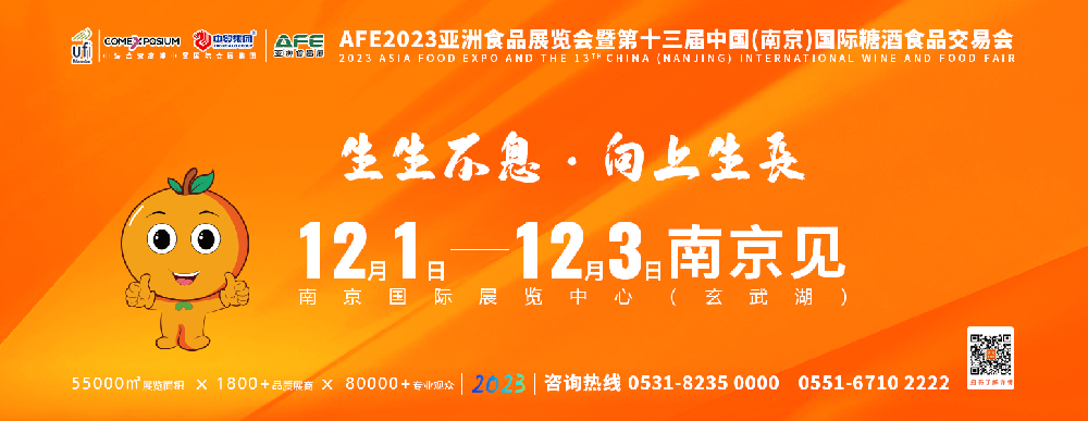 12月1日-3日,AFE2023亞洲食品展覽會(huì)暨第十三屆中國(南京)國際糖酒食品交易會(huì)(以下簡稱AFE2023亞食展暨第十三屆南京糖酒會(huì))將在南京國際展覽中心(···